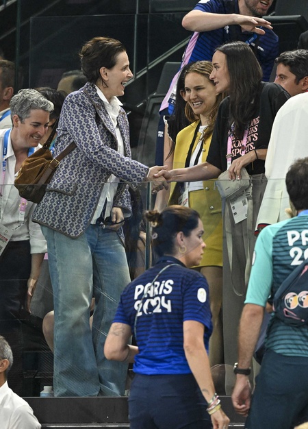 Juliette Binoche, Natalie Portman - Célébrités assistent aux épreuves de gymnastiques lors des Jeux Olympiques de Paris 2024 (JO) au Palais omnisports Bercy Arena, à Paris, France, le 30 juillet 2024. © Jacovides-Perusseau/Bestimage Juliette Binoche and Nathalie Portman, Gabriel Attal Celebrities attend the gymnastics events during the Paris 2024 Olympic Games (Olympics) at Palais Omnisports Bercy Arena in Paris on July 30, 2024.