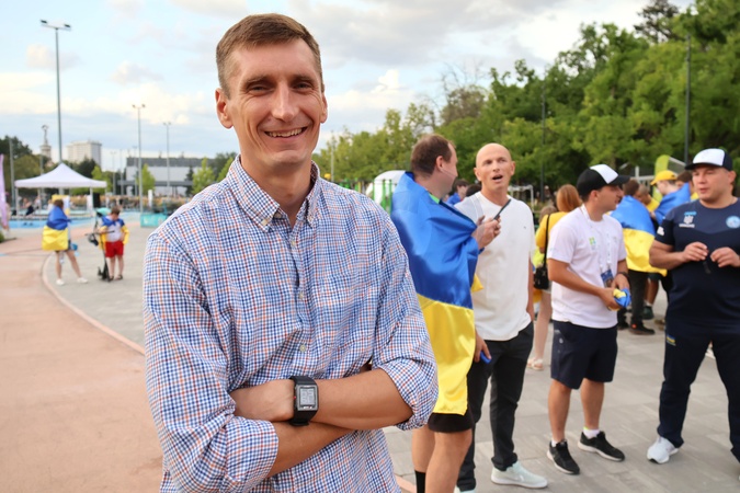 KYIV, UKRAINE - JULY 26, 2024 - Ukrainian modern pentathlete and Rio 2016 silver medallist Pavlo Tymoshchenko attends an event to mark the opening ceremony of the Paris 2024 Summer Olympics in the fan zone at the Expocenter of Ukraine (VDNG), Kyiv, capital of Ukraine., Credit:Pavlo Bahmut / Avalon