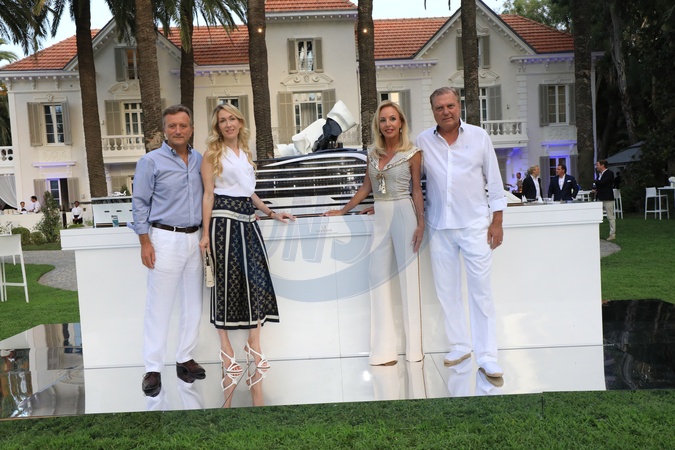 Exclusif - Frank Binder, Isabelle Lemoine, la princesse Camilla et le prince Charles de Bourbon des Deux-Siciles - Soirée privée chez le prince Charles et la princesse Camilla de Bourbon des Deux-Siciles au Château de Saint-Tropez à Saint-Tropez, à l'occasion de la présentation du super yacht résidentiel Ulyssia Ce bateau, qui fera 324 mètres de long, soit 55 mètres de plus que le Titanic, sillonnera les mers à partir de 2028, et pourra accueillir 132 résidences privées dans un luxe extraordinaire. Le 30 juillet 2024 © Franz Chavaroche / Bestimage Exclusive - For Germany Call for price - Private party at the Prince and Princess of Bourbon of the Two Sicilies in Saint-Tropez, on the occasion of the presentation of the super residential yacht Ulyssia. This ship, which will be 324 meters long, 55 meters longer than the Titanic, will sail the seas from 2028, and will be able to accommodate 132 private residences in extraordinary luxury. On July 30th 2024