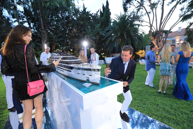 Exclusif - Guest - Soirée privée chez le prince Charles et la princesse Camilla de Bourbon des Deux-Siciles au Château de Saint-Tropez à Saint-Tropez, à l'occasion de la présentation du super yacht résidentiel Ulyssia Ce bateau, qui fera 324 mètres de long, soit 55 mètres de plus que le Titanic, sillonnera les mers à partir de 2028, et pourra accueillir 132 résidences privées dans un luxe extraordinaire. Le 30 juillet 2024 © Franz Chavaroche / Bestimage Exclusive - For Germany Call for price - Private party at the Prince and Princess of Bourbon of the Two Sicilies in Saint-Tropez, on the occasion of the presentation of the super residential yacht Ulyssia. This ship, which will be 324 meters long, 55 meters longer than the Titanic, will sail the seas from 2028, and will be able to accommodate 132 private residences in extraordinary luxury. On July 30th 2024