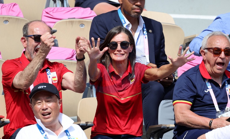 La reine Letizia d’Espagne assiste aux 1/4 de finale de tennis entre Carlos Alcaraz et Tommy Paul lors des Jeux Olympiques de Paris2024 (JO) à Roland Garros