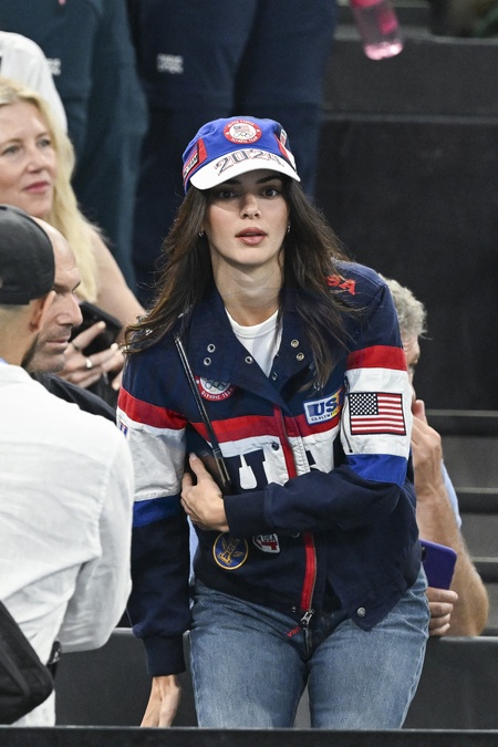 Kendall Jenner - Les célébrités assistent aux épreuves de Gymnastique artistique féminine, finale du concours général lors des Jeux Olympiques de Paris 2024 (JO) au Palais omnisports Bercy Arena, à Paris, France, le 1er août 20241. © Jacovides-Perusseau/Bestimage Celebrities attend the Women's Artistic Gymnastics All-Around Final during the Paris 2024 Olympic Games (Olympics) at Palais Omnisports Bercy Arena in Paris, France, August 1, 20241.