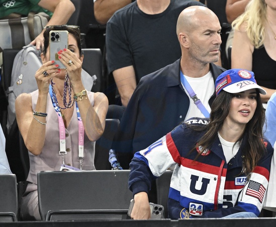 Zinédine Zidane, sa femme Véronique et Kendall Jenner - Les célébrités assistent aux épreuves de Gymnastique artistique féminine, finale du concours général lors des Jeux Olympiques de Paris 2024 (JO) au Palais omnisports Bercy Arena, à Paris, France, le 1er août 20241. © Jacovides-Perusseau/Bestimage Celebrities attend the Women's Artistic Gymnastics All-Around Final during the Paris 2024 Olympic Games (Olympics) at Palais Omnisports Bercy Arena in Paris, France, August 1, 20241.