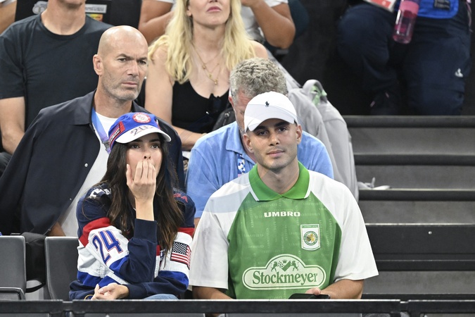 Zinédine Zidane et Kendall Jenner - Les célébrités assistent aux épreuves de Gymnastique artistique féminine, finale du concours général lors des Jeux Olympiques de Paris 2024 (JO) au Palais omnisports Bercy Arena, à Paris, France, le 1er août 20241. © Jacovides-Perusseau/Bestimage Celebrities attend the Women's Artistic Gymnastics All-Around Final during the Paris 2024 Olympic Games (Olympics) at Palais Omnisports Bercy Arena in Paris, France, August 1, 20241.