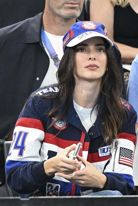 Kendall Jenner - Les célébrités assistent aux épreuves de Gymnastique artistique féminine, finale du concours général lors des Jeux Olympiques de Paris 2024 (JO) au Palais omnisports Bercy Arena, à Paris, France, le 1er août 20241. © Jacovides-Perusseau/Bestimage Celebrities attend the Women's Artistic Gymnastics All-Around Final during the Paris 2024 Olympic Games (Olympics) at Palais Omnisports Bercy Arena in Paris, France, August 1, 20241.