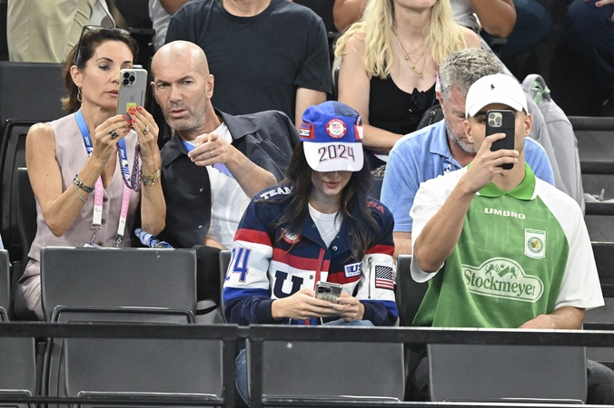 Zinédine Zidane, sa femme Véronique et Kendall Jenner - Les célébrités assistent aux épreuves de Gymnastique artistique féminine, finale du concours général lors des Jeux Olympiques de Paris 2024 (JO) au Palais omnisports Bercy Arena, à Paris, France, le 1er août 20241. © Jacovides-Perusseau/Bestimage Celebrities attend the Women's Artistic Gymnastics All-Around Final during the Paris 2024 Olympic Games (Olympics) at Palais Omnisports Bercy Arena in Paris, France, August 1, 20241.