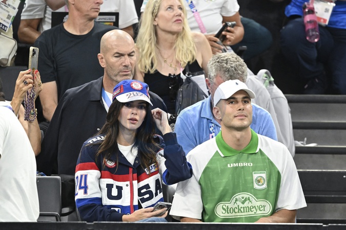 Zinédine Zidane et Kendall Jenner - Les célébrités assistent aux épreuves de Gymnastique artistique féminine, finale du concours général lors des Jeux Olympiques de Paris 2024 (JO) au Palais omnisports Bercy Arena, à Paris, France, le 1er août 20241. © Jacovides-Perusseau/Bestimage Celebrities attend the Women's Artistic Gymnastics All-Around Final during the Paris 2024 Olympic Games (Olympics) at Palais Omnisports Bercy Arena in Paris, France, August 1, 20241.
