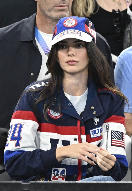 Kendall Jenner - Les célébrités assistent aux épreuves de Gymnastique artistique féminine, finale du concours général lors des Jeux Olympiques de Paris 2024 (JO) au Palais omnisports Bercy Arena, à Paris, France, le 1er août 20241. © Jacovides-Perusseau/Bestimage Celebrities attend the Women's Artistic Gymnastics All-Around Final during the Paris 2024 Olympic Games (Olympics) at Palais Omnisports Bercy Arena in Paris, France, August 1, 20241.