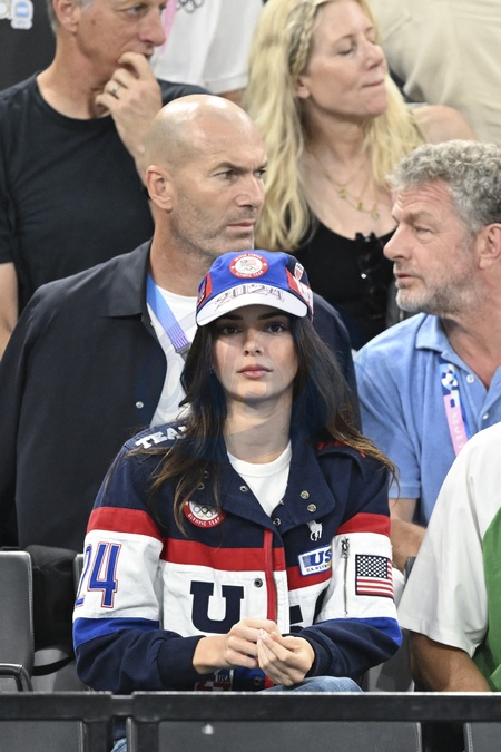 Zinédine Zidane et Kendall Jenner - Les célébrités assistent aux épreuves de Gymnastique artistique féminine, finale du concours général lors des Jeux Olympiques de Paris 2024 (JO) au Palais omnisports Bercy Arena, à Paris, France, le 1er août 20241. © Jacovides-Perusseau/Bestimage Celebrities attend the Women's Artistic Gymnastics All-Around Final during the Paris 2024 Olympic Games (Olympics) at Palais Omnisports Bercy Arena in Paris, France, August 1, 20241.