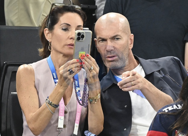 Zinédine Zidane et sa femme Véronique - Les célébrités assistent aux épreuves de Gymnastique artistique féminine, finale du concours général lors des Jeux Olympiques de Paris 2024 (JO) au Palais omnisports Bercy Arena, à Paris, France, le 1er août 20241. © Jacovides-Perusseau/Bestimage Celebrities attend the Women's Artistic Gymnastics All-Around Final during the Paris 2024 Olympic Games (Olympics) at Palais Omnisports Bercy Arena in Paris, France, August 1, 20241.