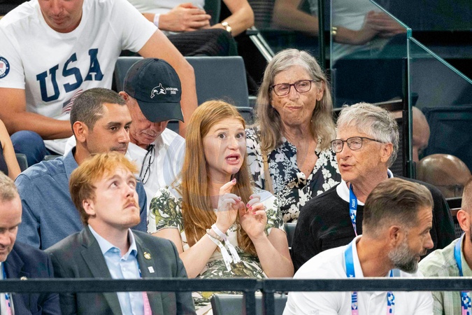 Bill Gates avec sa fille Jennifer Gates et son mari le cavalier égyptien Nayel Nassar - Les célébrités assistent aux épreuves de Gymnastique artistique féminine, finale du concours général lors des Jeux Olympiques de Paris 2024 (JO) au Palais omnisports Bercy Arena, à Paris, France, le 1er août 20241. © Jacovides-Perusseau/Bestimage Celebrities attend the Women's Artistic Gymnastics All-Around Final during the Paris 2024 Olympic Games (Olympics) at Palais Omnisports Bercy Arena in Paris, France, August 1, 20241.