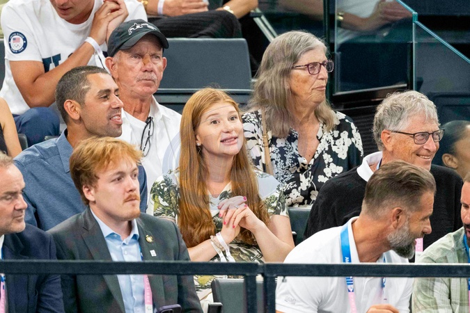 Bill Gates avec sa fille Jennifer Gates et son mari le cavalier égyptien Nayel Nassar - Les célébrités assistent aux épreuves de Gymnastique artistique féminine, finale du concours général lors des Jeux Olympiques de Paris 2024 (JO) au Palais omnisports Bercy Arena, à Paris, France, le 1er août 20241. © Jacovides-Perusseau/Bestimage Celebrities attend the Women's Artistic Gymnastics All-Around Final during the Paris 2024 Olympic Games (Olympics) at Palais Omnisports Bercy Arena in Paris, France, August 1, 20241.