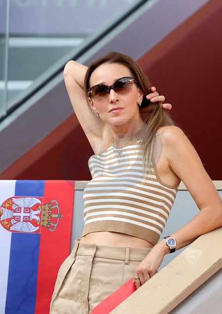 Jelena Djokovic - Les célébrités assistent à l'épreuve de tennis du quart de finale Novak Djokovic contre Stefanos Tsitsipas lors des Jeux Olympiques de Paris 2024 (JO) à Roland Garros, à Paris, France, le 1er août 2024. © Jacovides-Perusseau/Bestimage Celebrities attend the quarterfinal tennis match between Novak Djokovic and Stefanos Tsitsipas during the Paris 2024 Olympic Games (Olympics) at Roland Garros in Paris, France, on August 1, 2024.