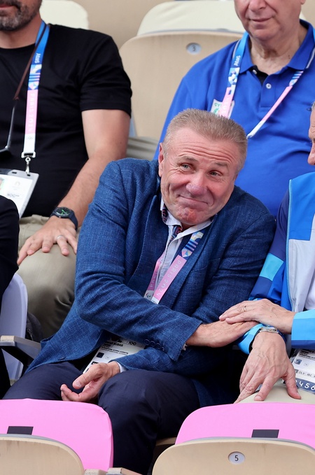 Sergueï Bubka - Les célébrités assistent à l'épreuve de tennis du quart de finale Novak Djokovic contre Stefanos Tsitsipas lors des Jeux Olympiques de Paris 2024 (JO) à Roland Garros, à Paris, France, le 1er août 2024. © Jacovides-Perusseau/Bestimage Celebrities attend the quarterfinal tennis match between Novak Djokovic and Stefanos Tsitsipas during the Paris 2024 Olympic Games (Olympics) at Roland Garros in Paris, France, on August 1, 2024.