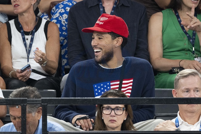 Devin Booker - Kendall Jenner et son ex-compagnon Devin Booker assistent aux épreuves de Gymnastique artistique féminine, finale du concours général lors des Jeux Olympiques de Paris 2024 (JO) au Palais omnisports Bercy Arena, à Paris le 1er aout 2024. © Perusseau-Jacovides/Bestimage Kendall Jenner and her ex-boyfriend Devin Booker attend the Women's Artistic Gymnastics All-Around Final during the Paris 2024 Olympic Games (OG) at Palais Omnisports Bercy Arena in Paris on August 1, 2024.