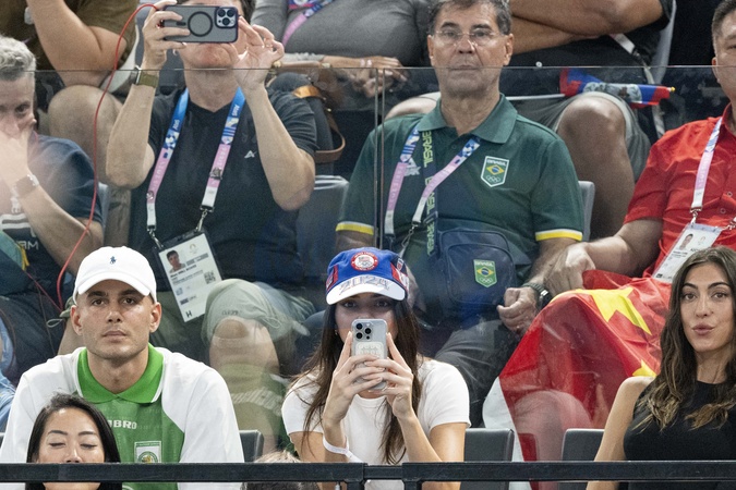 Kendall Jenner i jej były chłopak Devin Booker biorą udział w zawodach kobiecej gimnastyki artystycznej, wszechstronnym finale podczas Igrzysk Olimpijskich w Paryżu w 2024 r. w Palais omnisports Bercy Arena w Paryżu.