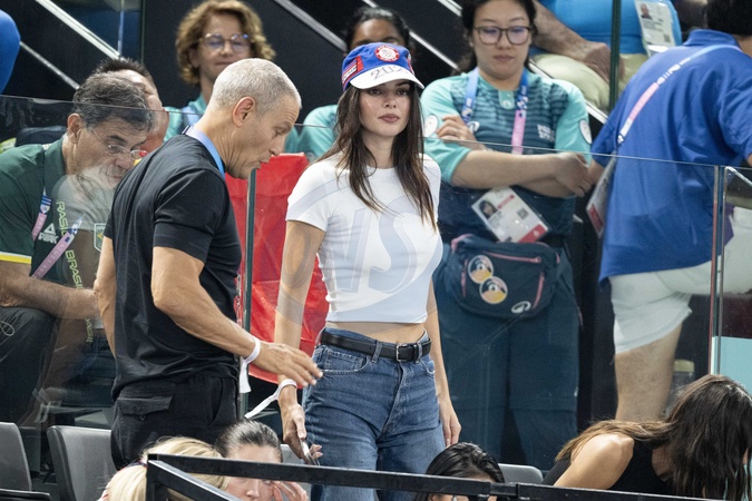 Kendall Jenner i jej były chłopak Devin Booker biorą udział w zawodach kobiecej gimnastyki artystycznej, wszechstronnym finale podczas Igrzysk Olimpijskich w Paryżu w 2024 r. w Palais omnisports Bercy Arena w Paryżu.