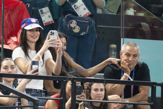 Kendall Jenner i jej były chłopak Devin Booker biorą udział w zawodach kobiecej gimnastyki artystycznej, wszechstronnym finale podczas Igrzysk Olimpijskich w Paryżu w 2024 r. w Palais omnisports Bercy Arena w Paryżu.