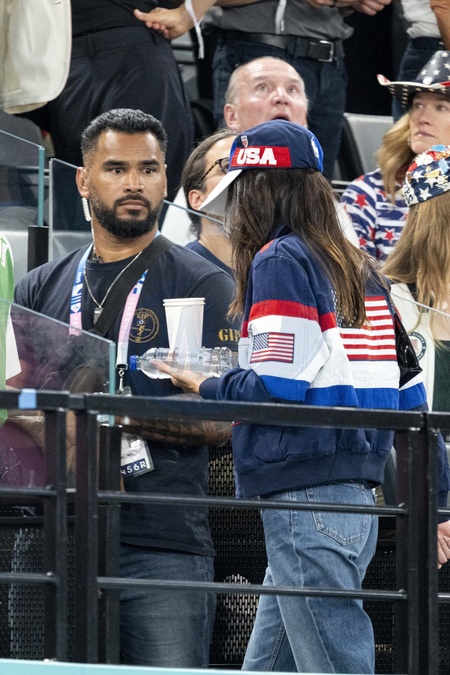 Kendall Jenner i jej były chłopak Devin Booker biorą udział w zawodach kobiecej gimnastyki artystycznej, wszechstronnym finale podczas Igrzysk Olimpijskich w Paryżu w 2024 r. w Palais omnisports Bercy Arena w Paryżu.