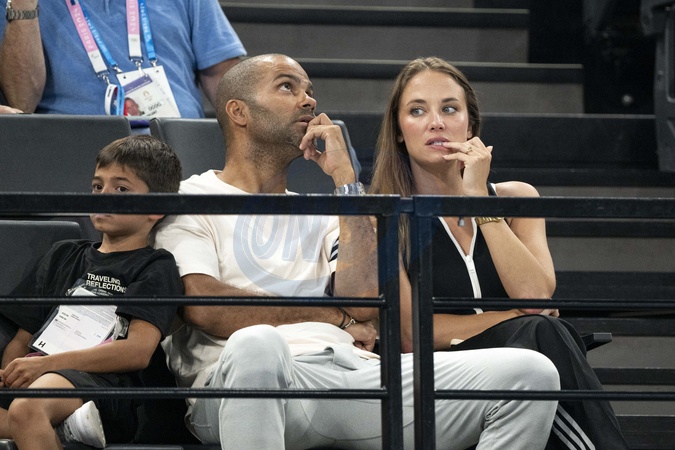 Tony Parker i jego partnerka Tony Parker wraz ze swoją partnerką Agathe Teyssier biorą udział w zawodach gimnastyki artystycznej kobiet, których finał odbywa się podczas Igrzysk Olimpijskich w Paryżu w 2024 r.