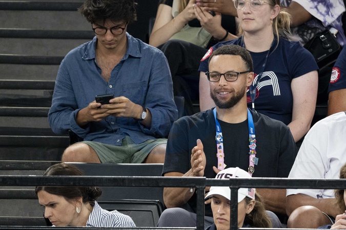 Stephen Curry - Les célébrités assistent aux épreuves de Gymnastique artistique féminine, finale du concours général lors des Jeux Olympiques de Paris 2024 (JO) au Palais omnisports Bercy Arena, à Paris, France, le 1er août 2024. © Jacovides-Perusseau/Bestimage Celebrities attend the Women's Artistic Gymnastics All-Around Final during the Paris 2024 Olympic Games (Olympics) at Palais Omnisports Bercy Arena in Paris, France, August 1, 2024