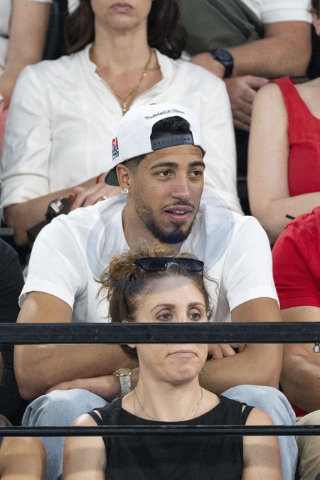 Les célébrités assistent aux épreuves de Gymnastique artistique féminine, finale du concours général lors des Jeux Olympiques de Paris 2024 (JO) au Palais omnisports Bercy Arena, à Paris, France, le 1er août 20241. © Jacovides-Perusseau/Bestimage Celebrities attend the Women's Artistic Gymnastics All-Around Final during the Paris 2024 Olympic Games (Olympics) at Palais Omnisports Bercy Arena in Paris, France, August 1, 2024 - Les célébrités assistent aux épreuves de Gymnastique artistique féminine, finale du concours général lors des Jeux Olympiques de Paris 2024 (JO) au Palais omnisports Bercy Arena, à Paris, France, le 1er août 2024. © Jacovides-Perusseau/Bestimage Celebrities attend the Women's Artistic Gymnastics All-Around Final during the Paris 2024 Olympic Games (Olympics) at Palais Omnisports Bercy Arena in Paris, France, August 1, 2024