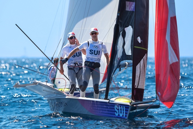 Sebastien Schneiter and Arno De Planta (Switzerland), Men's Skiff Medal Race - Sailing, during the Olympic Games Paris 2024. (Photo Norbert Scanella / DPPI Media / Panoramic