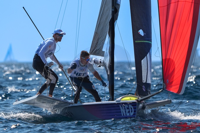 Bart Lambriex and Floris Van De Werken (Netherlands), Men's Skiff Medal Race - Sailing, during the Olympic Games Paris 2024. (Photo Norbert Scanella / DPPI Media / Panoramic