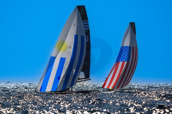 Hernan Umpierre and Fernando Diz (Uruguay), Ian Barrows and Hans Henken (USA), Men's Skiff Medal Race - Sailing, during the Olympic Games Paris 2024. (Photo Norbert Scanella / DPPI Media / Panoramic