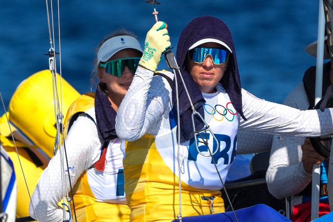Charline Picon and Sarah Steyaert (France), Women's Skiff Medal Race - Sailing, during the Olympic Games Paris 2024. (Photo Norbert Scanella / DPPI Media / Panoramic