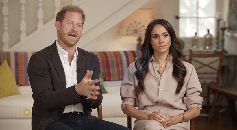 Książę Harry, książę Sussex i Meghan Markle, księżna Sussex, podczas wywiadu dla CBS News w niedzielny poranek