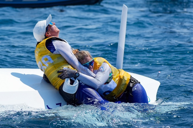 Sarah Steyaert et Charline Picon décrochent le bronze en épreuve de voile 49er FX lors des Jeux Olympiques de Paris 2024 (JO) à la marina de Marseille
