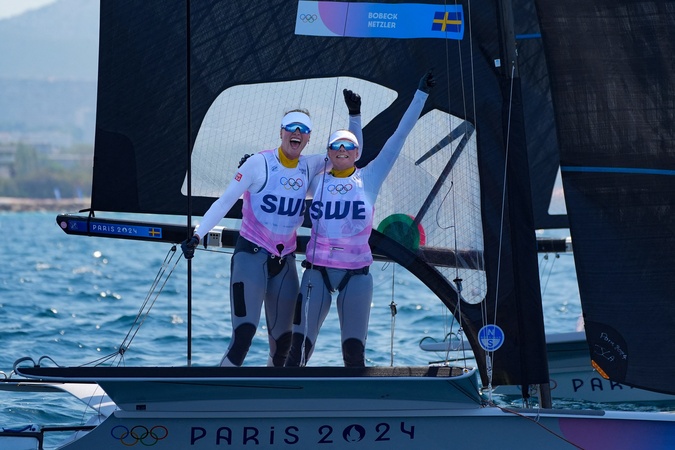 Vilma Bobeck and Rebecca Netzler (Sweden) - 49er FX - Sailing, Skiff during the Olympic Games Paris 2024 at the Marseille marina, France, on August 2, 2024. © Norbert Scanella/Panoramic/Bestimage