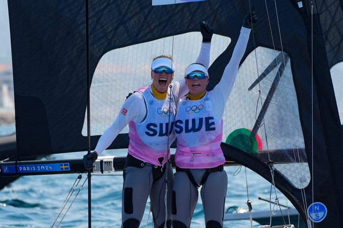 Vilma Bobeck and Rebecca Netzler (Sweden) - 49er FX - Sailing, Skiff during the Olympic Games Paris 2024 at the Marseille marina, France, on August 2, 2024. © Norbert Scanella/Panoramic/Bestimage