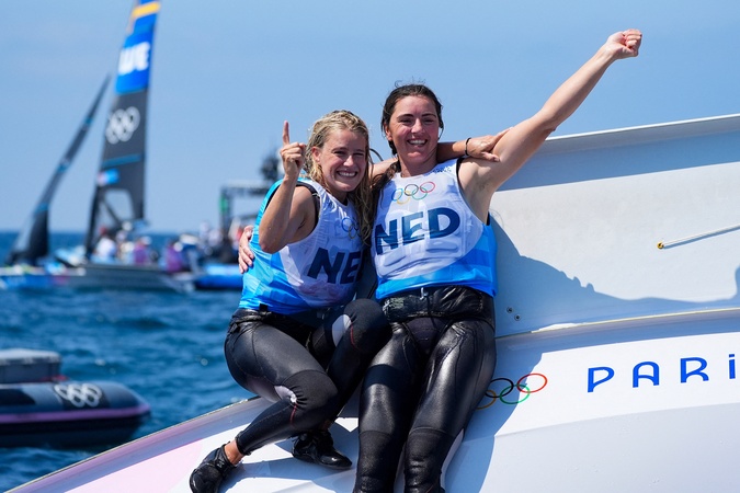 Odile Van Aanholt and DUETZ Annette Duetz (Netherlands) - 49er FX - Sailing, Skiff during the Olympic Games Paris 2024 at the Marseille marina, France, on August 2, 2024. © Norbert Scanella/Panoramic/Bestimage