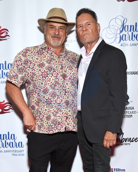 Eric Preven and A Martinez arriving to Santa Barbara 40th Anniversary Reunion at The Colony Theatre on August 02, 2024 in Burbank
