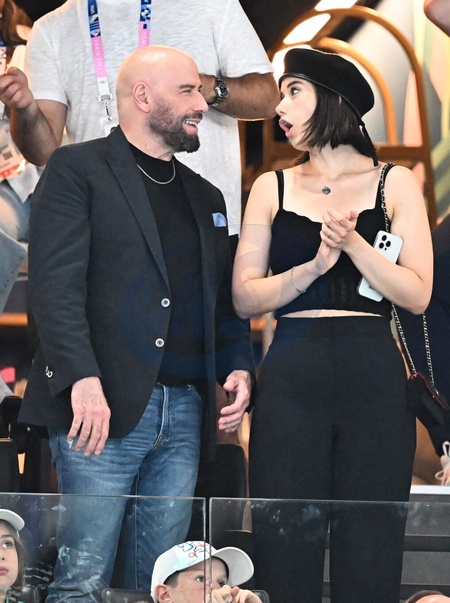 John Travolta et sa fille Ella Bleu assistent aux épreuves de gymnastique lors des Jeux Olympiques de Paris2024 (JO)