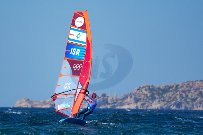 Sharon Kantor (Israel) during the final women's windsurfing Medal Race - Sailing, during the Olympic Games Paris 2024. (Photo Norbert Scanella / DPPI Media / Panoramic)