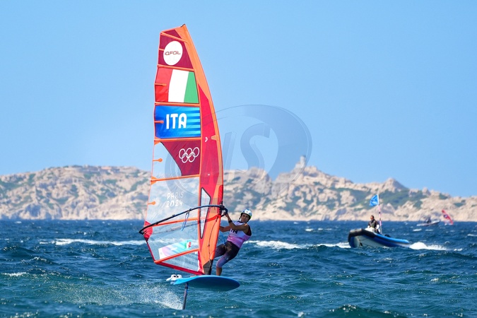 Marta Maggetti (Italy) during the final women's windsurfing Medal Race - Sailing, during the Olympic Games Paris 2024. (Photo Norbert Scanella / DPPI Media / Panoramic)