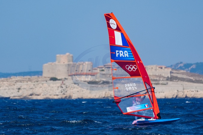 Helene Noesmoen (France) during the final women's windsurfing Medal Race - Sailing, during the Olympic Games Paris 2024. (Photo Norbert Scanella / DPPI Media / Panoramic)