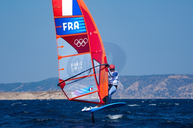 Helene Noesmoen (France) during the final women's windsurfing Medal Race - Sailing, during the Olympic Games Paris 2024. (Photo Norbert Scanella / DPPI Media / Panoramic)