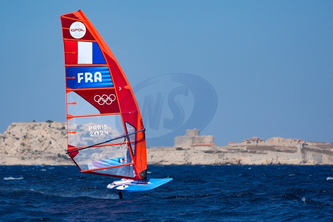 Helene Noesmoen (France) during the final women's windsurfing Medal Race - Sailing, during the Olympic Games Paris 2024. (Photo Norbert Scanella / DPPI Media / Panoramic)