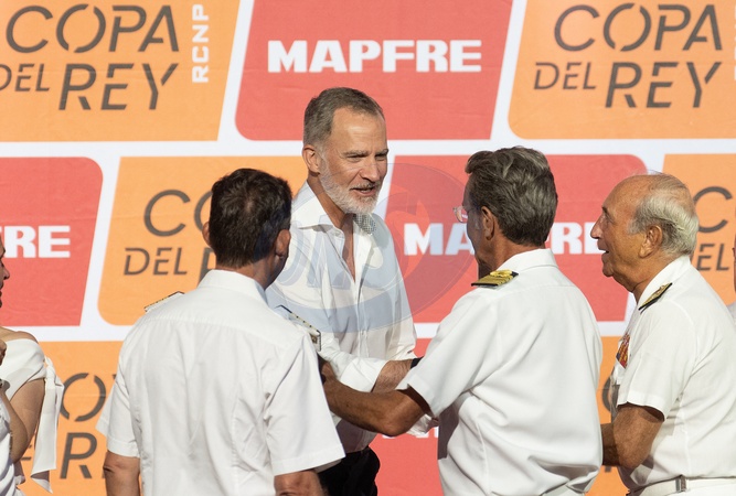 King Felipe VI presides over the Copa del Rey Mapfre Sailing Trophy awards ceremony. Palma de Mallorca - August 3, 2024