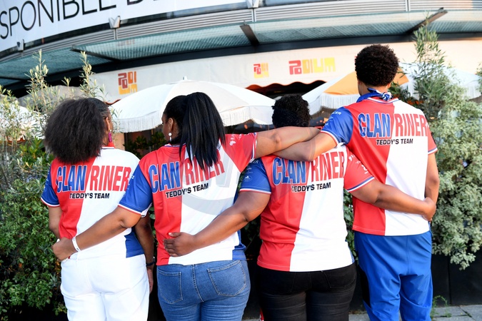 Exclusif - Prix Spécial - No Web - Ambiance - Teddy Riner fête son titre de champion Olympique de judo +100KG au restaurant "Podium" du groupe (Les bistrots Pas Parisiens) à Paris le 2 aout 2024. © Rachid Bellak/Bestimage Exclusive - For Germany call for price - No Web - Teddy Riner celebrates his Olympic judo champion title +100KG at the group's "Podium" restaurant (Les bistrots Pas Parisiens) in Paris on August 2, 2024 No Web For Belgium and Switzerland