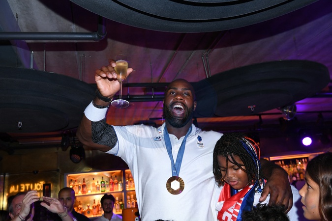 Teddy Riner świętuje swój tytuł mistrza olimpijskiego w judo +100 kg w należącej do grupy restauracji „Podium” (Les bistrots Pas Parisiens) w Paryżu.
