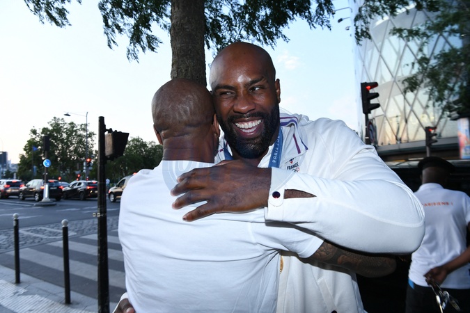 Teddy Riner świętuje swój tytuł mistrza olimpijskiego w judo +100 kg w należącej do grupy restauracji „Podium” (Les bistrots Pas Parisiens) w Paryżu.