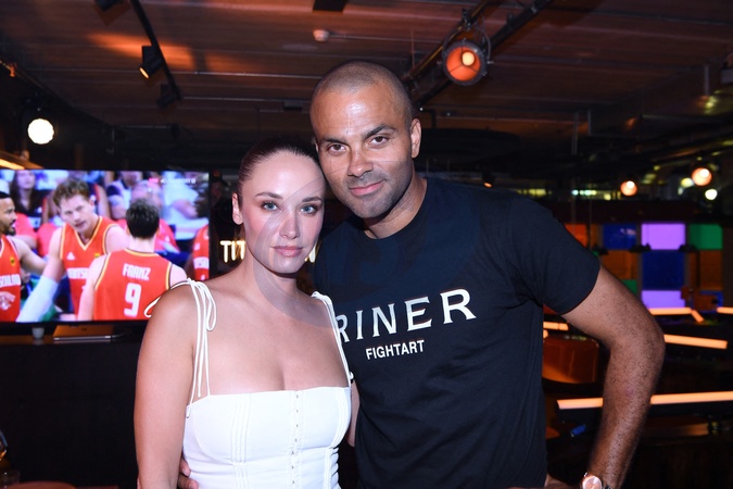 Exclusif - Prix Spécial - No Web - Tony Parker avec sa compagne Agathe Teyssier - Teddy Riner fête son titre de champion Olympique de judo +100KG au restaurant "Podium" du groupe (Les bistrots Pas Parisiens) à Paris le 2 aout 2024. © Rachid Bellak/Bestimage Exclusive - For Germany call for price - No Web - Teddy Riner celebrates his Olympic judo champion title +100KG at the group's "Podium" restaurant (Les bistrots Pas Parisiens) in Paris on August 2, 2024 No Web For Belgium and Switzerland