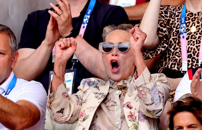 Sharon Stone - Célébrités assistent à la victoire de Novak Djokovic face à Carlos Alcaraz lors de la finale de tennis des Jeux Olympiques de Paris 2024 (JO) sur le cour Philippe Chatrier à Roland Garros, à Paris, France, le 4 Aout 2024. © Jacovides-Perusseau/Bestimage Celebrities attend Novak Djokovic's victory over Carlos Alcaraz in the Paris 2024 Olympic Games (Olympics) tennis final on Philippe Chatrier Court at Roland Garros in Paris, France, August 4, 2024.