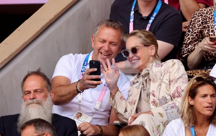 Sharon Stone - Célébrités assistent à la victoire de Novak Djokovic face à Carlos Alcaraz lors de la finale de tennis des Jeux Olympiques de Paris 2024 (JO) sur le cour Philippe Chatrier à Roland Garros, à Paris, France, le 4 Aout 2024. © Jacovides-Perusseau/Bestimage Celebrities attend Novak Djokovic's victory over Carlos Alcaraz in the Paris 2024 Olympic Games (Olympics) tennis final on Philippe Chatrier Court at Roland Garros in Paris, France, August 4, 2024.