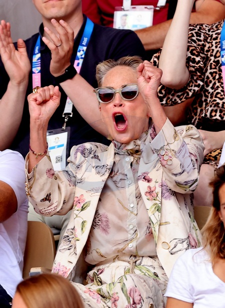 Sharon Stone - Célébrités assistent à la victoire de Novak Djokovic face à Carlos Alcaraz lors de la finale de tennis des Jeux Olympiques de Paris 2024 (JO) sur le cour Philippe Chatrier à Roland Garros, à Paris, France, le 4 Aout 2024. © Jacovides-Perusseau/Bestimage Celebrities attend Novak Djokovic's victory over Carlos Alcaraz in the Paris 2024 Olympic Games (Olympics) tennis final on Philippe Chatrier Court at Roland Garros in Paris, France, August 4, 2024.